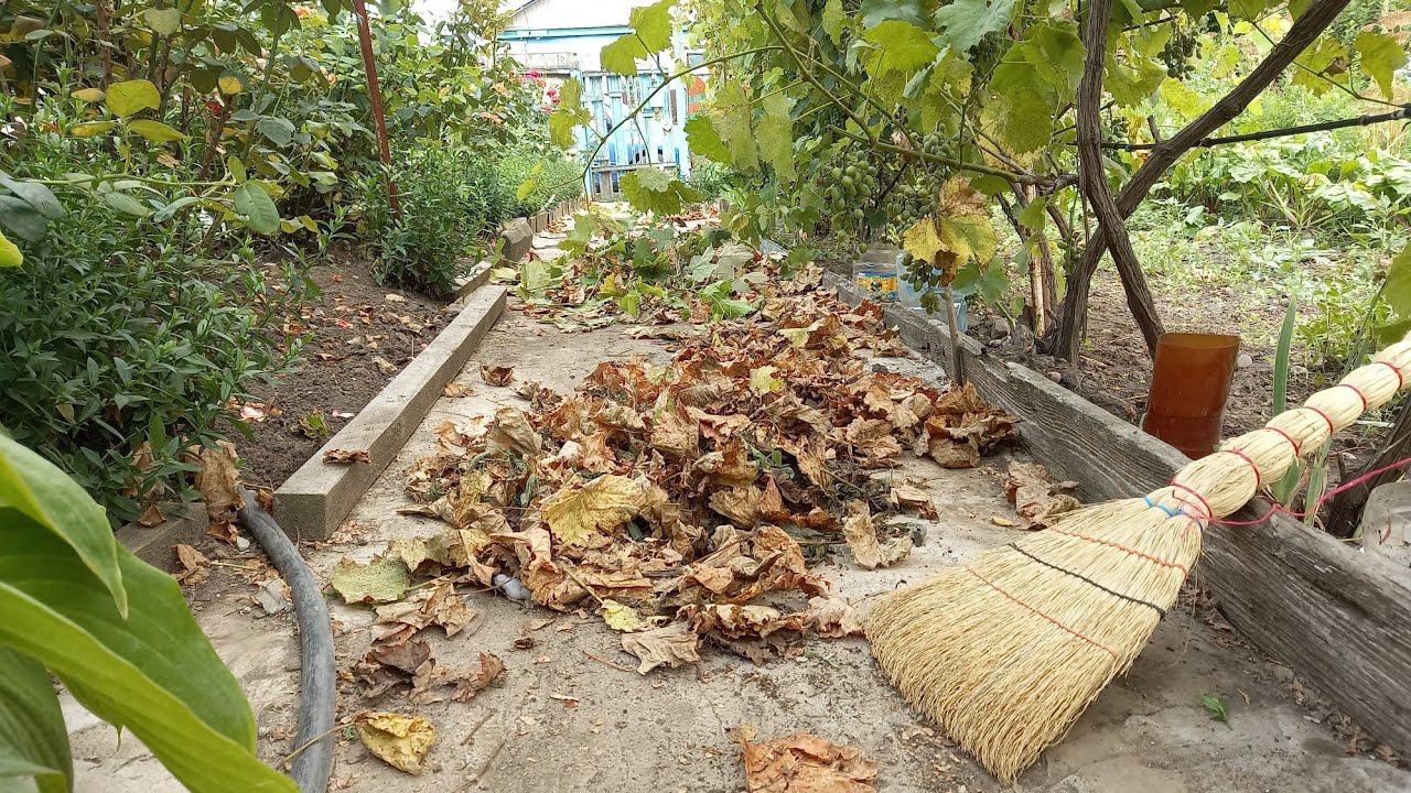 Удаление опавшей листвы от винограда. Отденое спасибо Наталье и Ирине! Саликовы. Из Сибири на юг.