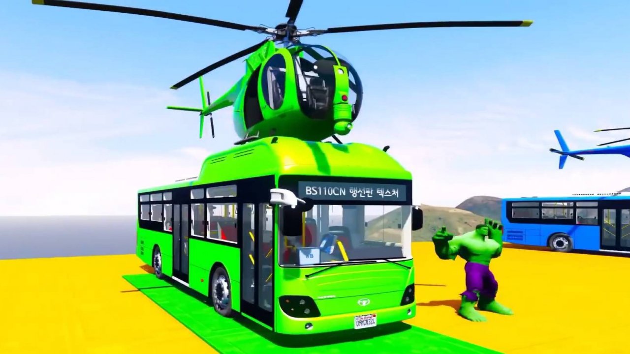Мультики про цветные Большие Автобусы и Вертолеты с детскими стишками для Детей