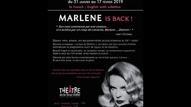 Gérard Chambre chante: Un amour est morte Profitez d'un court extrait d'une autre chanson présentée dans MARLENE IS BACK avec Cyrielle CLAIR dans le rôle de la divine Marlene Dietrich. L'American Film Institute a nommé Dietrich la neuvième plus grande star féminine du cinéma classique hollywoodien (Wikipedia) Miss Clair sera accompagnée sur scène par Gérard Chambre dans différents rôles masculins.... ************************************************************* Gérard Chambre with the Song " Un amour est morte/ A Love is dead Enjoy a short extract from another of the Chansons presented in MARLENE IS BACK with Cyrielle CLAIR in the role of the divine Marlene Dietrich. The American Film Institute named Dietrich the ninth-greatest female star of classic Hollywood cinema source (Wikipedia) Miss Clair will be accompanied on stage by Gérard Chambre in various male roles...