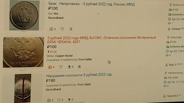 Цены : Пятирублёвки 2020-х годов и их монетных браков