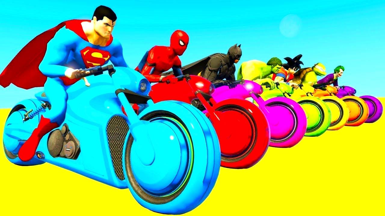 мультик про Цветные мотоциклы и супергероев для детей с песнями для детей