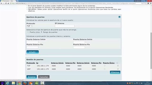 ABRIR PUERTOS CUALQUIER ROUTER MOVISTAR