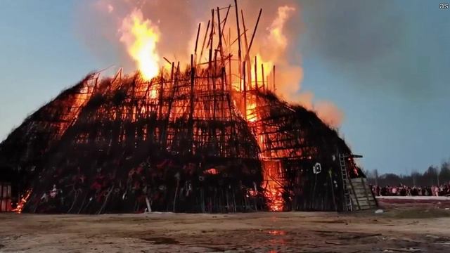 В Калужской области на Масленицу сожгли символическую "чёрную гору"