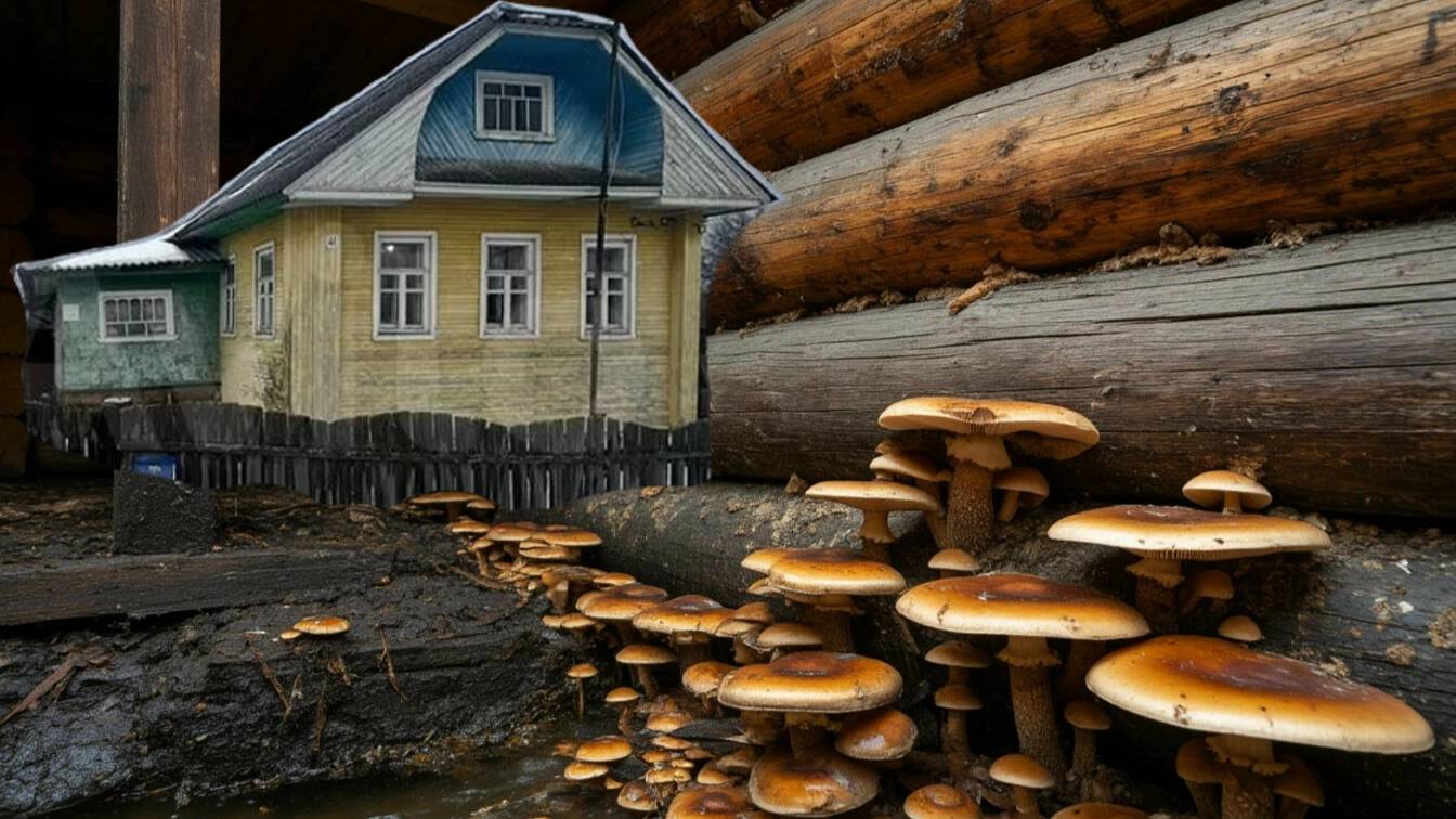 Дом не так плох, как думал. Осматриваю нижние венцы дома.