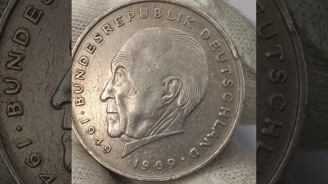 2 дойчмарки 1971 года ФРГ Аденауэр.