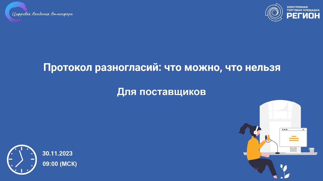 Подписывайтесь на нас в социальных сетях, чтобы не пропустить свежие новости: https://academy-atmosphere.ru/zakupki https://t.me/academy_atmosfera https://vk.com/academy_atmosfera https://rutube.ru/channel/24606397/ 00:00 Вступление 04:09 Приветствие спикера Сафину Светлану Дамировну 04:42 Протокол разногласий: что можно, что нельзя? 06:56 Протокол разногласий 12:10 Структура протокола 16:01 Протокол разногласий с закупках по 44-ФЗ 18:26 На что обратить внимание? 44-ФЗ 28:00 Практика применения протокола разногласий 44-ФЗ 40:55 Вопросы 44-ФЗ 47:31 На что обратить внимание? 223-ФЗ 47:53 Практика применения протокола разногласий 223-ФЗ 52:40 Ответы на вопросы участников