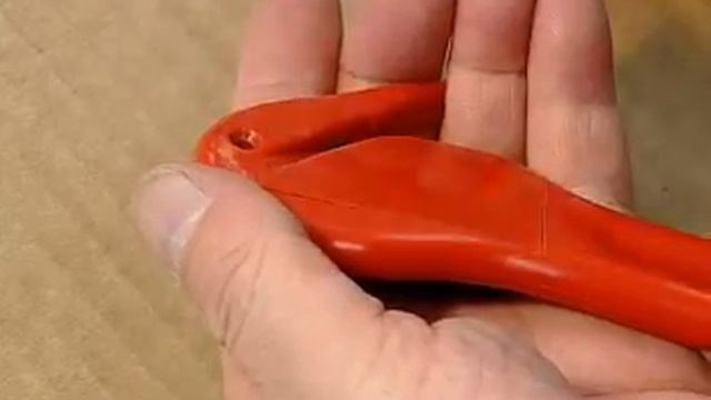 A Cutter designed for SAFE and trouble free work with thick plastic sheeting, leather, box strappings and, even, seat belts. Same as FOLEX, but handle made of glassfiber reinforced polyamide and with 0.30 mm stainless steel blade. "GS-TESTED FOR SAFETY". IMPORTANT: Strappings always should be cut with a diagonal stroke!