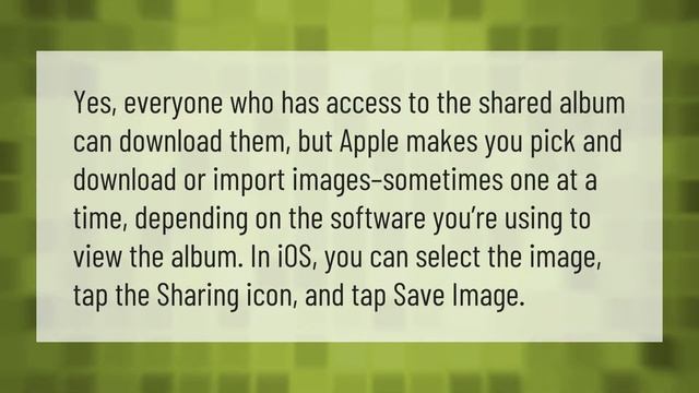 00:00 - How do I move photos from shared album on iPhone? 00:37 - How do I download photos from a shared iCloud album? 01:08 - How do I remove a photo from a shared album? Laura S. Harris (2021, May 29.) How do I move photos from shared album on iPhone? AskAbout.video/articles/How-do-I-move-photos-from-shared-album-on-iPhone-249420 ---------- The purpose of our channel is to create informational videos. With this video, our goal is to spread scientific knowledge. The scientific approach to the subject in some cases necessitates the presentation of details that may be objectionable to some.