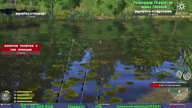 Поддержка донатом https://www.donationalerts.com/r/kalyamba11 Альтернативный донат https://new.donatepay.ru/@1032463 5536913964533059 карта Тинькоф Если стрим лагает,смотри стрим на трово https://trovo.live/s/Kalyamba_na_Ribalke Мой ВК - https://vk.com/kalyantv НИК в игре kalyan11 НАШ ДИСКОРД СЕРВЕР https://discord.gg/mSbnTJK8TB Заказ водоема на 1 час - 500р ( весь стрим 2500р ) Модерка на канале 1200р ( каждая следующая на 100р больше) Озвучка доната на 40р,50р,100р,200р,300р,500р,1000р ✅Призы в рулетке "ЗОЛОТАЯ" ✔ ЗОЛОТО ✔ ПРЕМ ✔ КАТУШКИ РАПТОР 40, АЗИМУТ 10000, СИЛЬВЕР 80, ТАЙГА с 30 ✔ ПАЛКИ ПИЛКЕРНАЯ, ДОНКА МОРСКИЕ, ✔ РОД ПОД, СТУЛЬЯ ✅Призы в рулетке СТАНДАРТ : ✔ катушка "РАПТОР 40" ✔ катушка "АЗИМУТ 10000" ✔ катушка "ТАЙГА С30, С40," ✔ катушки 60 для медного ( ЭВИИ, НАТОРЫ, ГОЛДА, и тд) ✔ ПИЛКЕРНОЕ УДИЛИЩЕ КОРОЛЕВА ОКЕАНА ✔ Морское Донное удилище ✔ прем ( 3, 7, 30 дней) ✔ золото ( 1, 3, 5, 10, 20 ,50) ✔ билет на море ( 1, 3, 5 дней) ✔ голд наживка и др. ✅Призы в рулетке "СТАРТОВАЯ" ✔ катушка "silver80" ✔ катушка "БЕЛЫЙ КАЛИБР" ✔ катушка "Черный калибр" ✔ катушка "Протон" ✔ катушка "Нарга 6000" ✔ Набор Фидерист и спинингист ✔ Карповик Фортуна ✔ фидерные удилища ✔ прем, золото, алкашка, наживки и тд P.s Рулетка это не казино, а награда за поддержку стримера. Вечный ТОП ПОДДЕРЖКИ (11.05.2024) 1. Dimon_pokemonchik 119 784 2. Interceptor 75 508 3. Skreb79 71 261 4. une personne 68 619 5. Нарвал77 31 550
