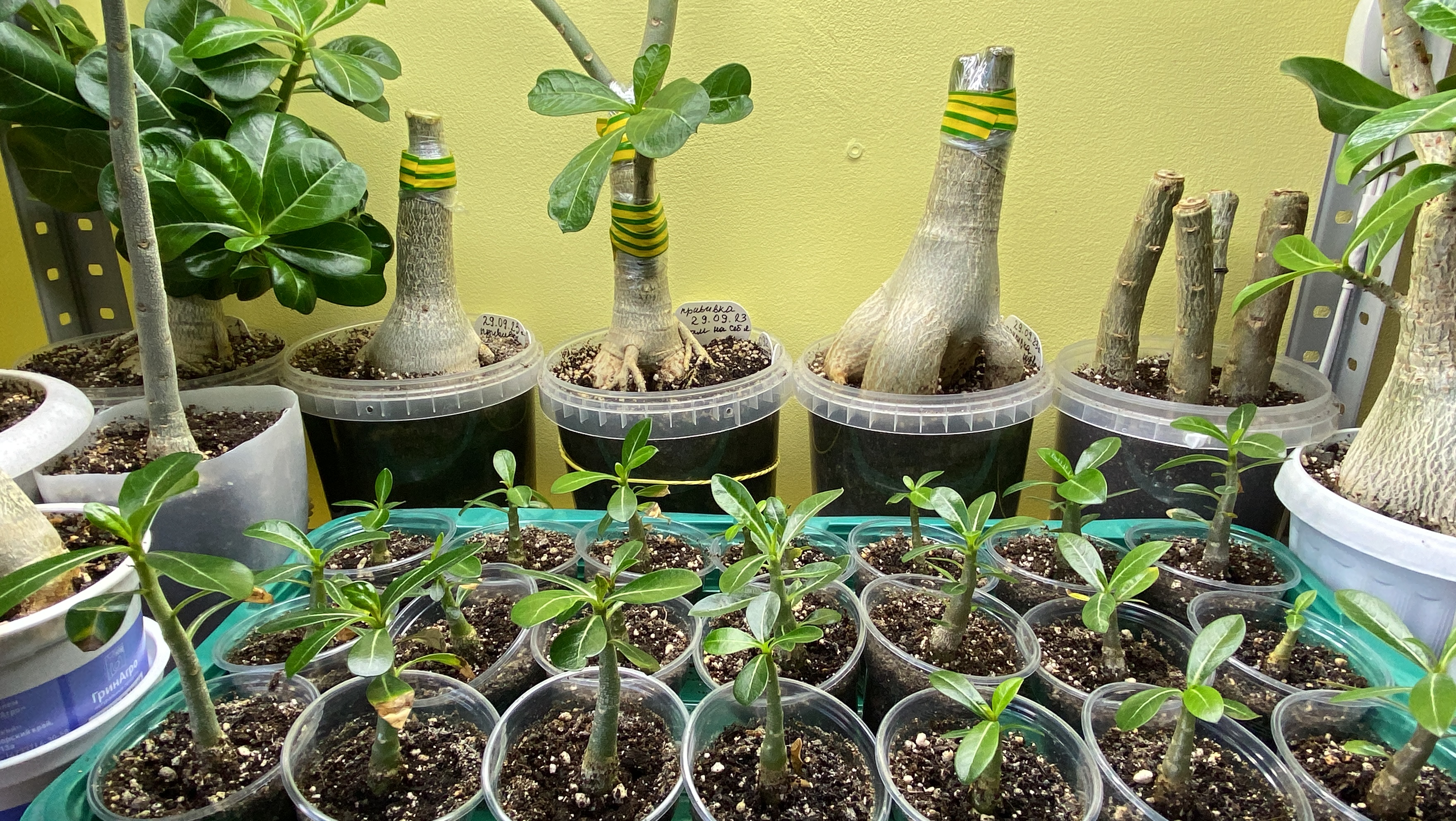 Что с адениумами после обрезки корней и макушек? Смотрим прививки. 14 октября 2023 г.