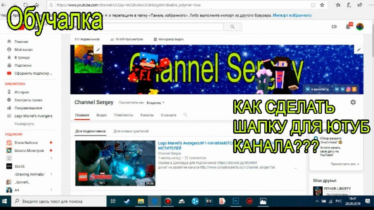 КАК СОЗДАТЬ СВОЮ ШАПКУ ДЛЯ ЮТУБ КАНАЛА В ФОТОШОПЕ(Обучалки)