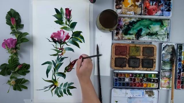 Как нарисовать ШИПОВНИК урок акварели, танцующая кисть, поэтапно
