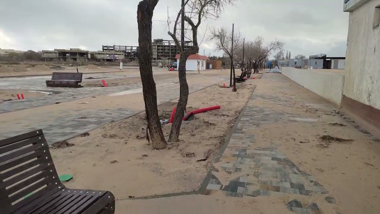 Евпатория 2023. Лазурная набережная-3 сразу после шторма и через три недели. Сравниваем что сделано.