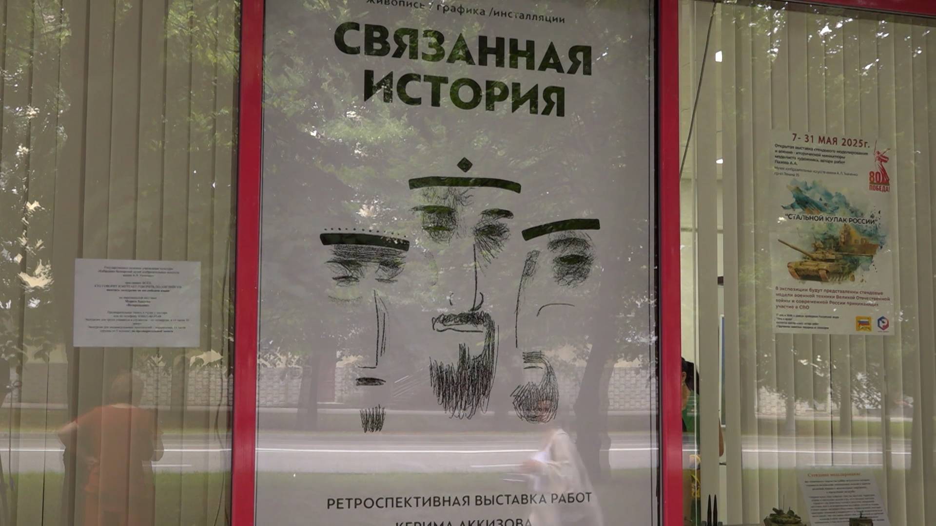 Она приурочена к 50 летнему юбилею художника. Выставка - не подведение итогов, а история о том, как развивается визуальное мышление и меняется человек, не перестающий искать. Художник, дизайнер, педагог, куратор. Его работы в частных и музейных коллекциях, как в России, так и за рубежом. Родившись в творческой семье, Керим унаследовал любовь к изобразительному искусству от родителей. На вопрос, что чувствует мама, Сияра скромно отвечает: Сегодня мальчик, в способности которого однажды поверили родители, — член Союза художников России. За вклад в развитие изобразительного искусства КБР, многолетний труд и в связи с 50-летием Керим Аккизов награжден Почетной грамотой Министерства культуры Кабардино-Балкарии. В этот раз Аккизов собрал свои работы, написанные в разные годы, в одну «Связанную историю». Его картины – про движение, про путь, который продолжается. Ранняя графика, экспериментальные инсталляции, живопись. Здесь каждый находит «свою» картину. Для молодежи особые послания (показать картину Все будет норм). Среди дорогих для художника работ - серия «Память лет». Полотна Аккизова привлекают нестандартным видением мира и техникой исполнения. В рамках 50-летнего юбилея художника в Нальчике на разных площадках проходят выставки картин Аккизова. Завершающая - третья откроется в павильоне Парка 100-летия 8 августа.