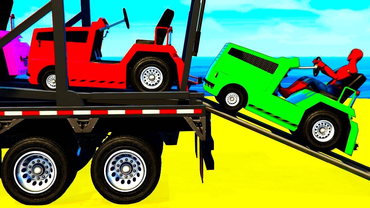 Мультики про Цветные Машинки для Детей Машины на Автовозе и Супергерои Песенки для детей