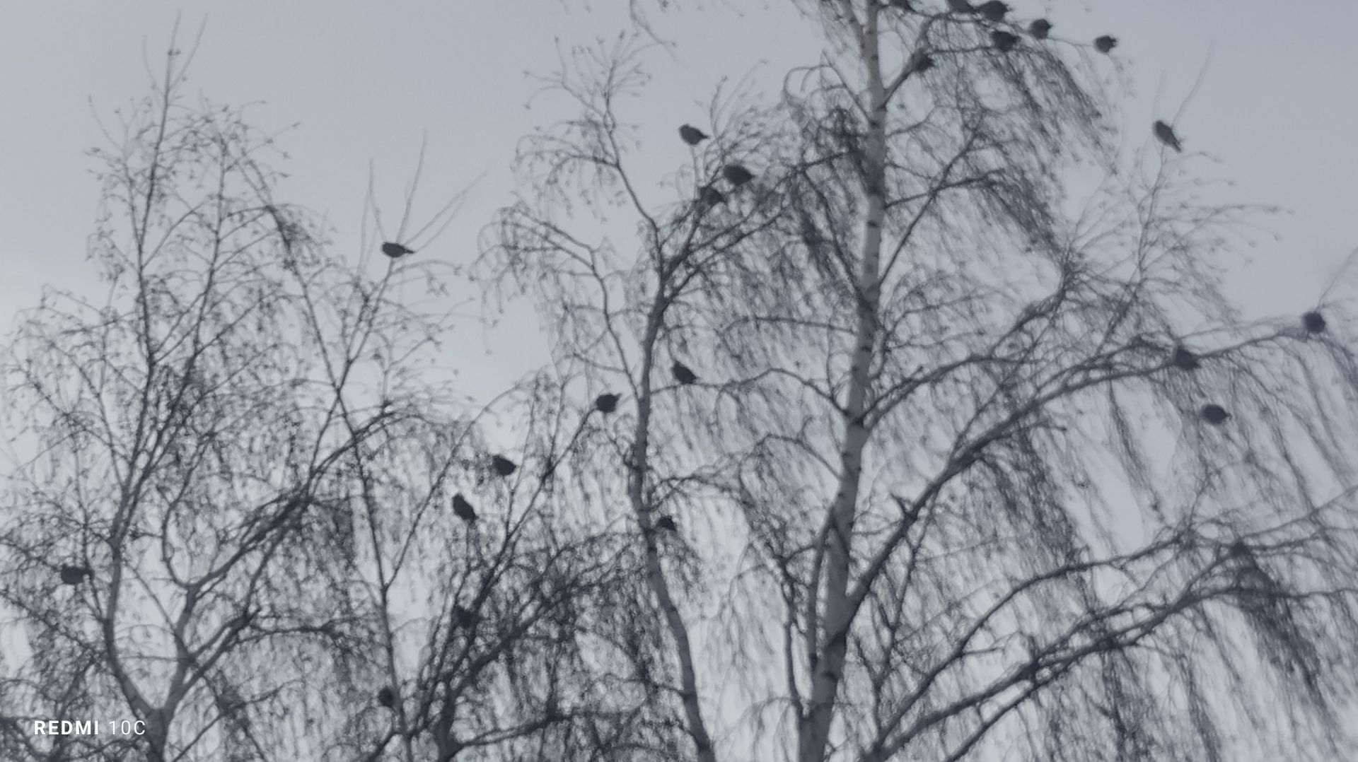 На нашу берёзу под окном прилетели неизвестные птички