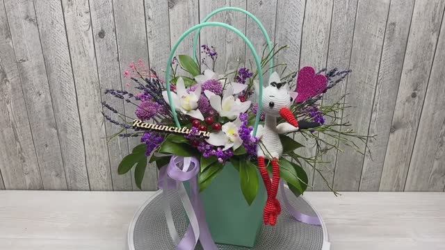 Композиция из живых цветов на выписку из роддома