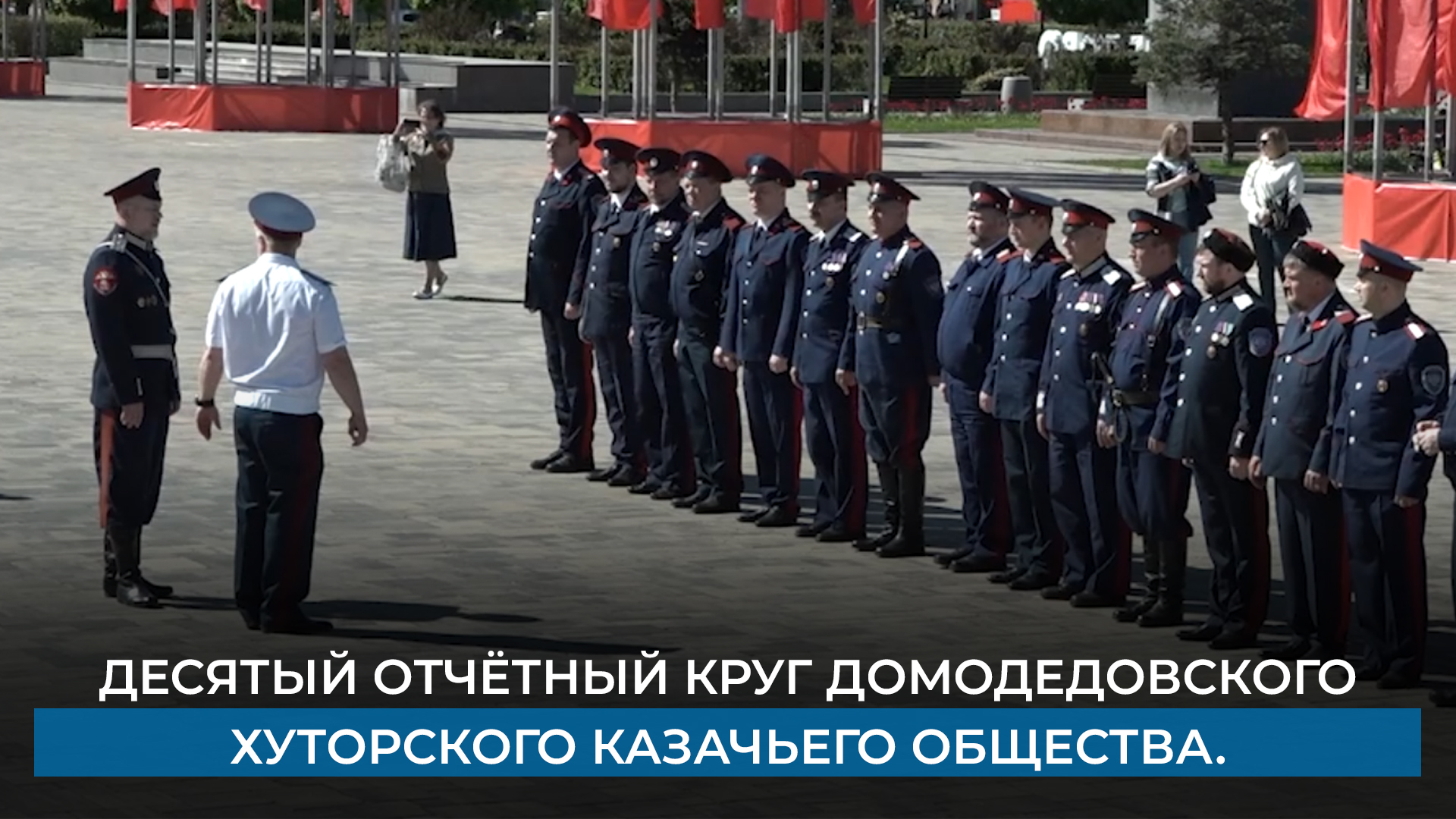 Парадная форма, военная выправка, чеканный шаг. На площади у молодёжного центра «Победа» состоялся десятый отчётный круг Домодедовского хуторского казачьего общества. Кто ещё участвовал в традиционном смотре – расскажет Татьяна Брылова.