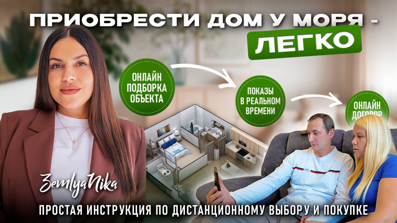Сегодня купить недвижимость на Черном море можно полностью дистанционно. Ещё вчера для сделки требовалось обязательное личное присутствие — от просмотров до подписания документов. Сейчас процесс стал намного проще: 99%, а в отдельных случаях и 100% этапов мы проводим удалённо. В этом видео я подробно показала, как проходит дистанционная покупка через бюро недвижимости ЗемляНика: от первичной консультации и проверки объекта — до оформления сделки и передачи ключей. Если после просмотра у вас остались вопросы — пишите. Всегда на связи.