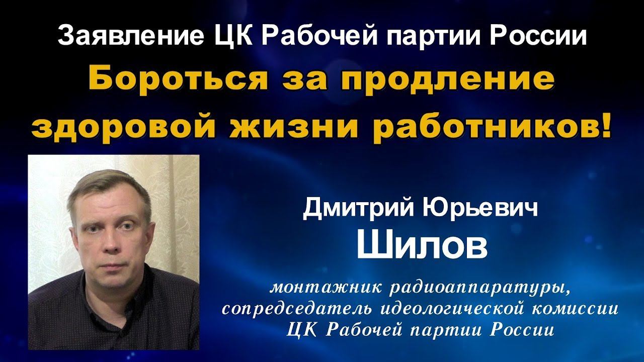 Заявление ЦК РПР: «Бороться за продление здоровой жизни работников!» Д.Ю.Шилов. 06.06.2018.