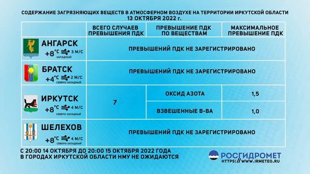 [14.10.2022] Мониторинг состояния атмосферного воздуха 13.10.2022