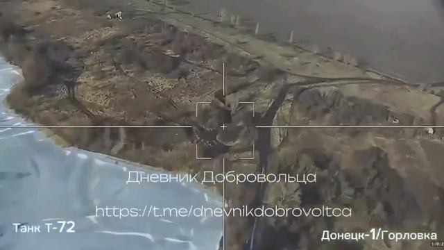 Поражение очередного Т-72 ВСУ барражирующим боеприпасом «Ланцет» на Донецком направлении.