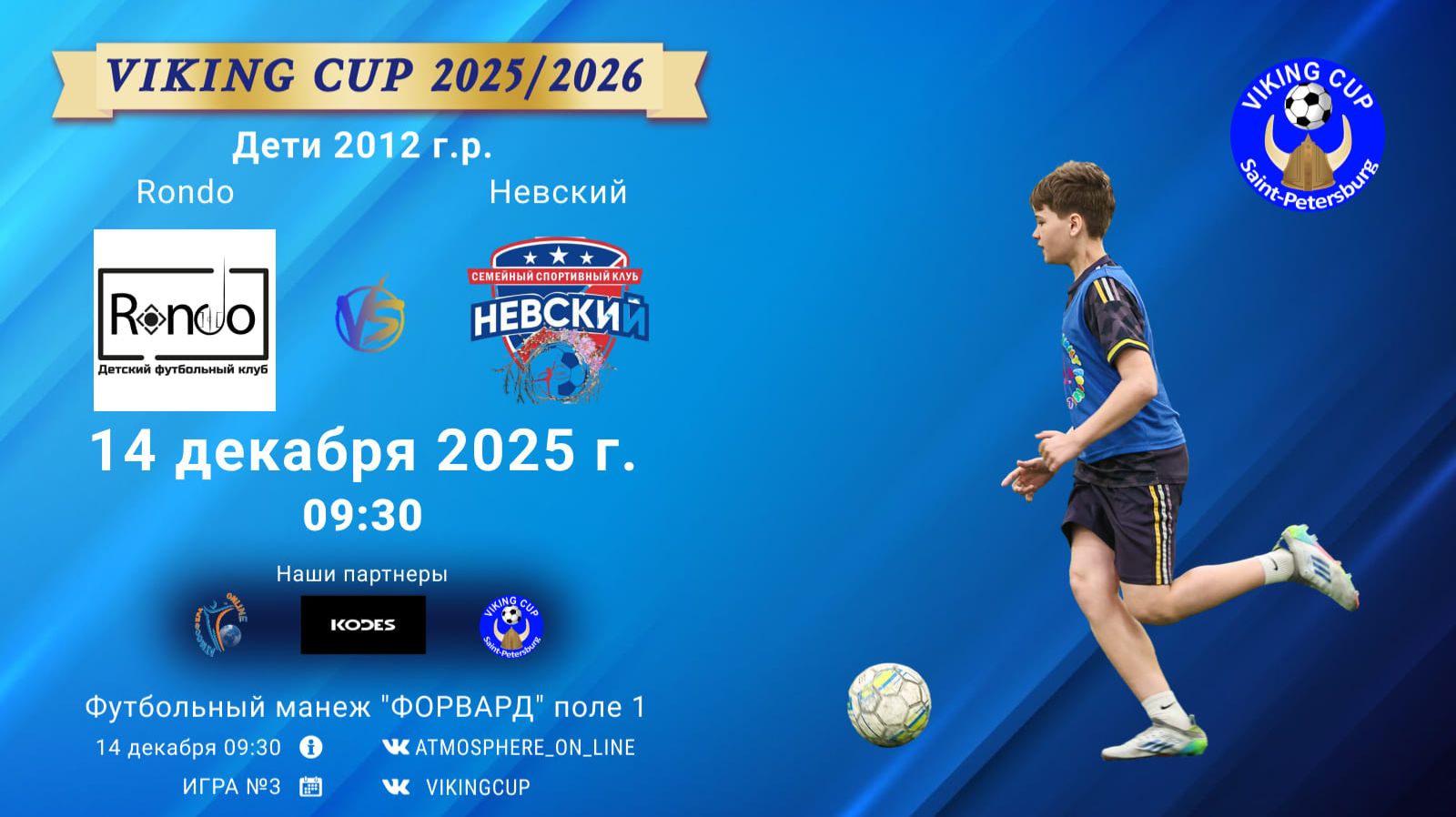 VIKING CUP среди команд 2012 г.р. (U13), Поле 1 14 декабря 2025 САНКТ-ПЕТЕРБУРГ, ФЦ "Форвард" ФК "Rondo" - ФК "Невский"/VIKING CUP, Игра №3, 14-12-2025 9:30
