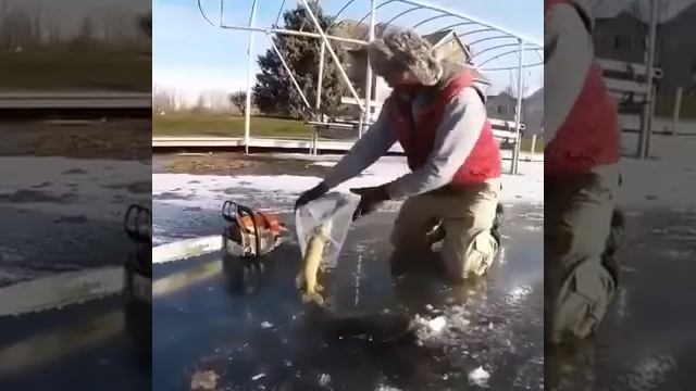 Очередная зубастая пала жертвой собственной жадности, не сумев отпустить слишком большую добычу так и вмерзла в лед. В принципе мясо не протухло, так что на котлеты еще вполне сгодится.