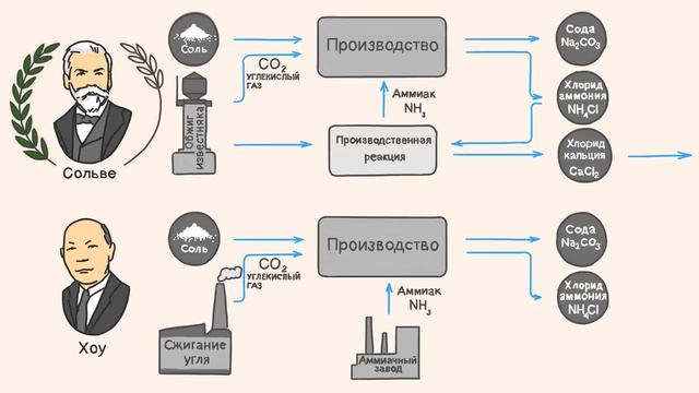 Ролик кратко рассказывает о способах производства соды: классическом методе Сольве и его упрощенной схеме - методе Хоу. Способ получения технической соды из нефелинов для нужд алюминиевой промышленности и добыча соды из недр в данном ролике не рассматриваются.