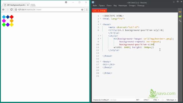 ⁂ 24.1 Свойство background-position-x(y)-положение фонового изображения по x(y). CSS. Обучение