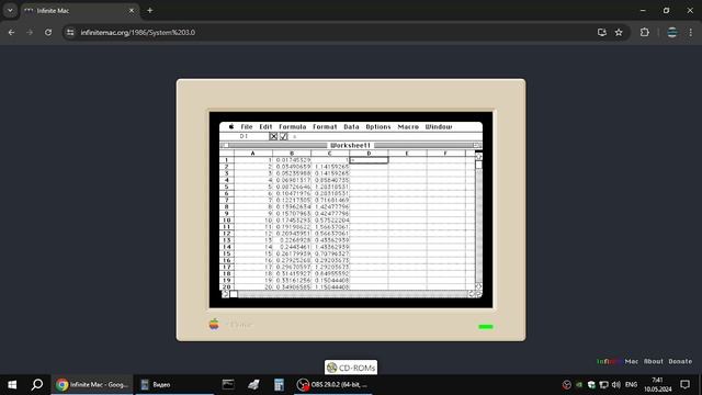 Excel на онлайн эмуляторе Apple Macintosh 1986 года