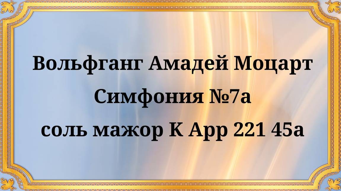 Вольфганг Амадей Моцарт Симфония №7a соль мажор K App 221 45a