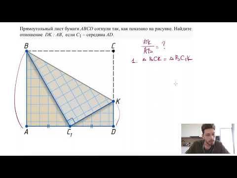 Прямоугольный лист бумаги ABCD согнули так, как показано на рисунке. Найдите отношение DK : AB, если C1 – середина AD. Сайт - https://taplink.cc/ege_oge.math Мой второй канал для подготовки к ЕГЭ и ОГЭ - https://www.youtube.com/ЕвгенийСумин TikTok - https://vm.tiktok.com/WJJwK9 Инстаграм - https://www.instagram.com/EGE_OGE.math Личный инстаграм - https://www.instagram.com/ee_sumin VK - https://vk.com/evgeniysumin