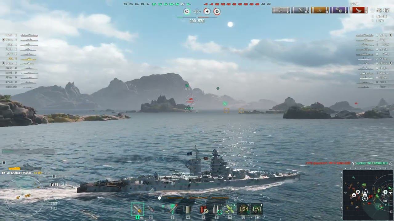 Бой на Чарлике 2 (WORLD OF WARSHIPS) Французский Крейсер Charles Martel