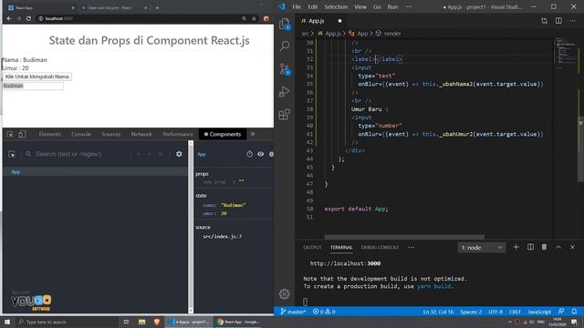 Tutorial React.js Part-6 : State dan Props di Component React.js