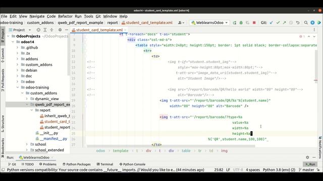 How to generate barcode in Odoo? How to create QR code in Odoo, different ean13 ean8 code128 qr barcode or qr code generate using img image tag or t-field tag. Please check till end of this discussion you will get all technical knowledge about this topic. In case you missed previous discussion about how to generate qweb report in pdf file please check below link. https://youtu.be/uF4VkNFoDOI #odoobarcode #odooqrcode #odooqweb #odooreports #odoopdfreport #odooqwebpdf #odooqwebtemplate #odooreport #odooqwebtutorial #odootutorial #odooweblearns #Odoo #odoodevelopmenttutorial #odootips #odoo #odoodevelopment #odootraining #odoofreetutorial #weblearns Timestamp of this session, About custom barcode qrcode generator in Odoo? 00:00 Introduction about current session 00:20 Previous session detail. 00:29 About Odoo different topics. 01:08 PDF report QWeb template engine detail. 1:36 How to generate QR code in Odoo? 2:32 How to generate static QR in Odoo? 5:43 How to generate dynamic QR in Odoo? 08:23 How to provide more dynamic way to generate QR code in Odoo? 14:23 How to generate EAN13 EAN8 Code128 and UPCA barcode in Odoo? 18.32 How to use t-field t tag to generate barcode in Odoo? 21:44 Final discussion about this session. Facebook Page :- https://www.facebook.com/freeweblearns LinkedIn Page :- https://www.linkedin.com/company/weblearns Blogger Page:- https://googlyengineer.blogspot.com/ Support me :- https://ko-fi.com/weblearns paypal.me/weblearners inquiryweblearns@gmail.com Subscribe - Share - Comment/Suggestion - Enjoy